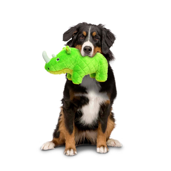 Say hello to Rhoni the Mighty Rhinoceros—bright, bold, and ready to charge into playtime! Built for dogs who don’t hold back, Rhoni’s tough outer hide and double-layered construction (with heavy-duty fleece underneath) make her one seriously sturdy sidekick. Whether it’s tug, toss, or chew time, she’s up for the challenge and ready to keep the fun going for hours!
