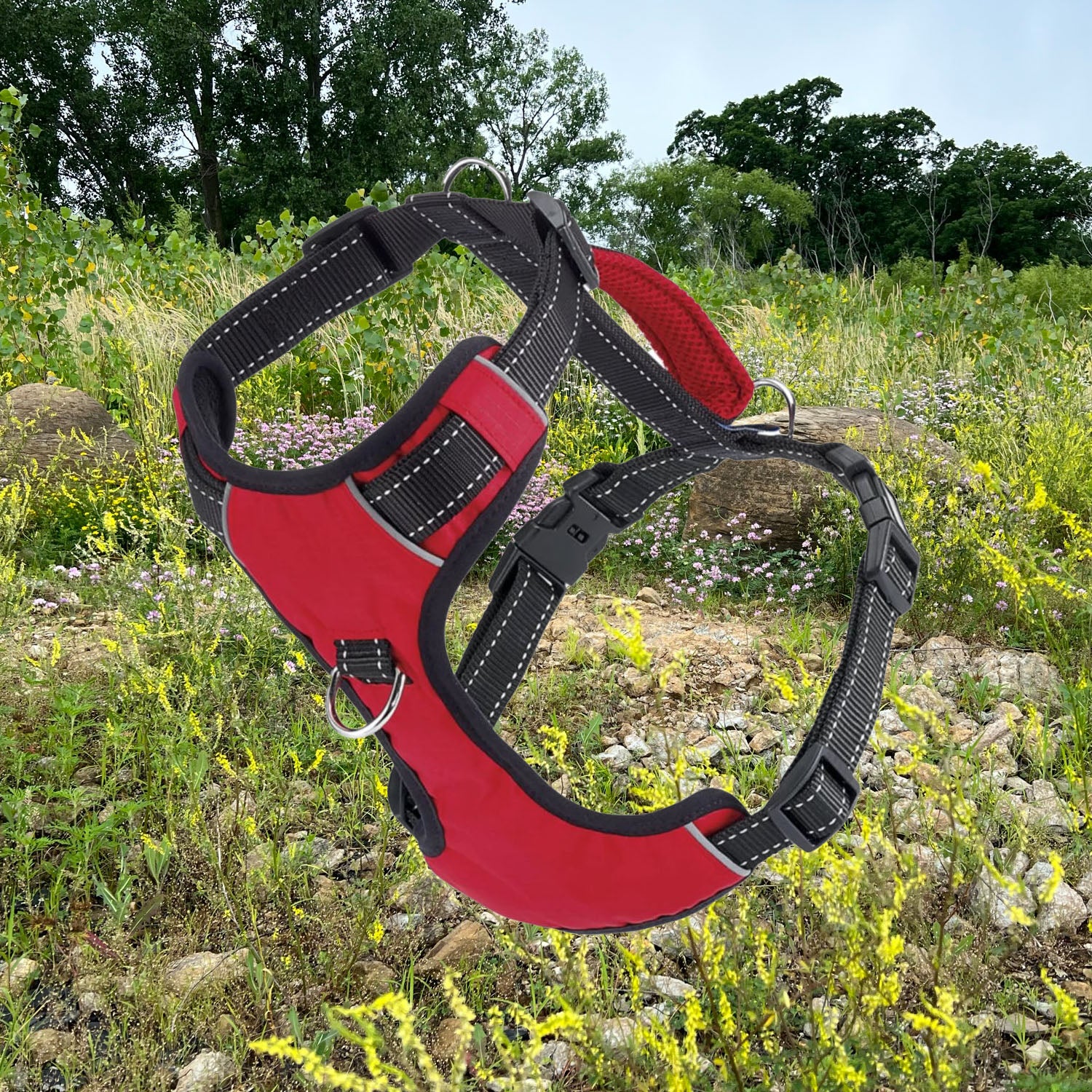 - Harness handle on top so you can help your dog over difficult terrain or have better traffic control for safety