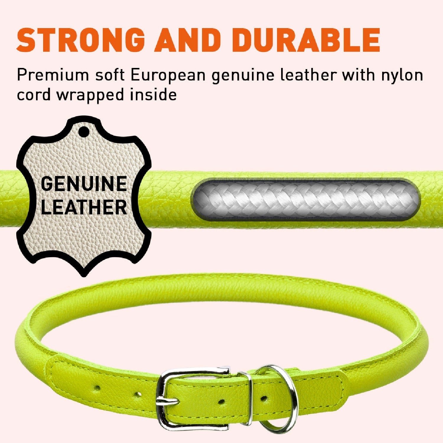 This stylish Round Leather Dog Collar by Dogline is the perfect way to ensure your pup makes a statement. Crafted with strong, durable leather and a nylon cord wrapped in leather, this collar won't stretch or break and will provide your pup with long-term comfort. So, show the world your pup's unique style and make heads turn with this timeless classic!