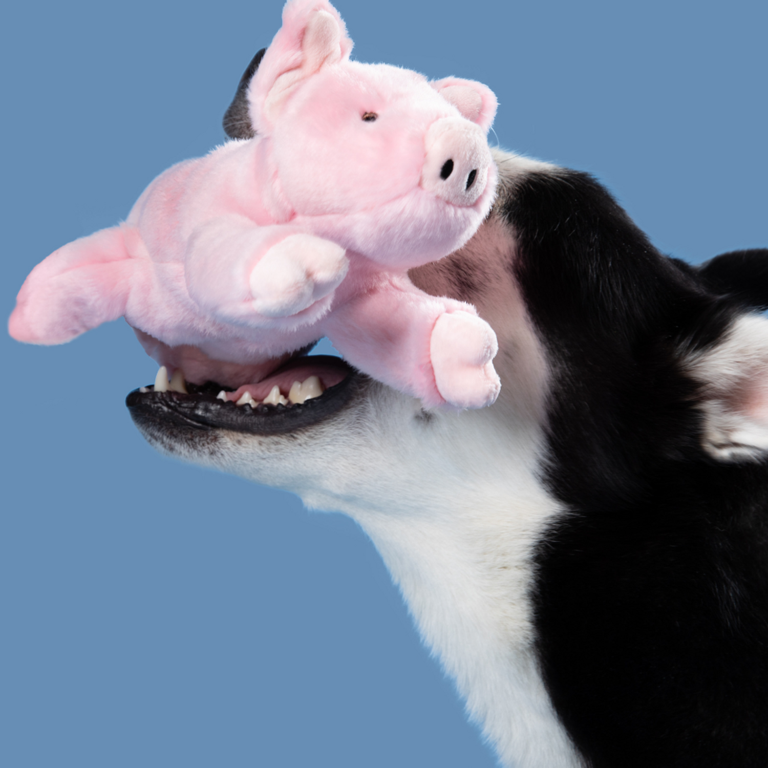 Petey Pig is ready to take flight during your dog’s favorite game of fetch! This medium-sized toy, measuring 11" long, loves to be tossed, shaken, and tugged. Even if your furry friend drags Petey through the mud, he bounces back clean and fresh after a quick wash. Let the fun take off with Petey Pig!
