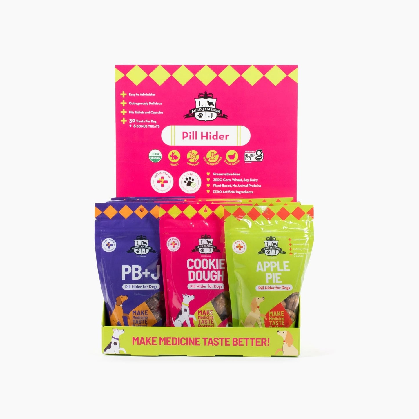 Finally — a clean, healthy, and tail-wagging way to give your dog their medications without the struggle. Pill Hider Treats are crafted with robust flavors to mask the bitter taste of pills and real bits of peanuts, oats, and blueberries to create texture confusion — helping prevent your dog from detecting (and spitting out) their medicine.