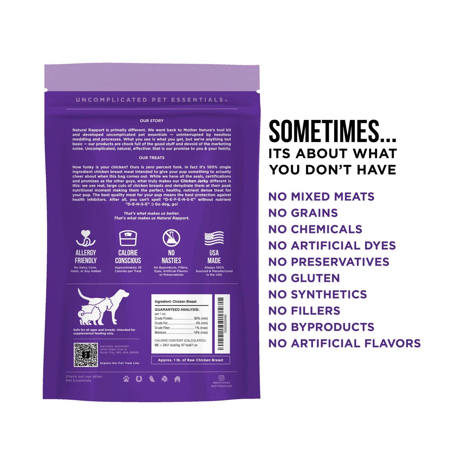 Give your pup a reason to cheer with our Only Dehydrated Chicken Jerky! Made from 100% chicken breast—yep, that’s the only ingredient—these hearty cuts are dehydrated at their peak to lock in all the good stuff.