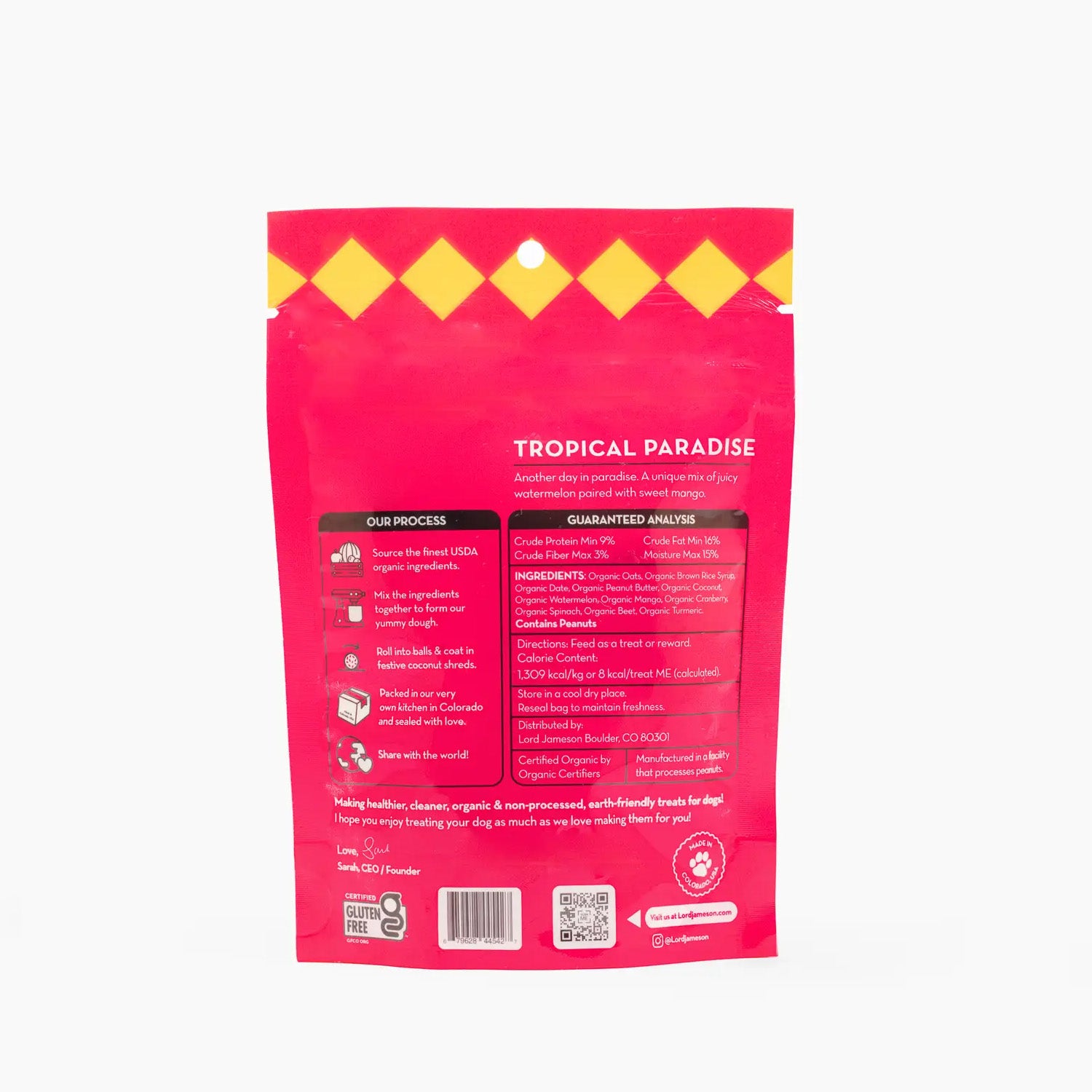 This recipe is pure paradise—a refreshing mix of juicy watermelon and sweet mango, blended with wholesome, vitamin-rich superfoods. Every bite is packed with clean, organic ingredients your pup will adore.
