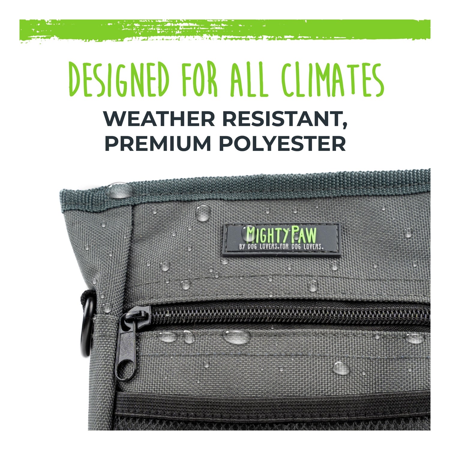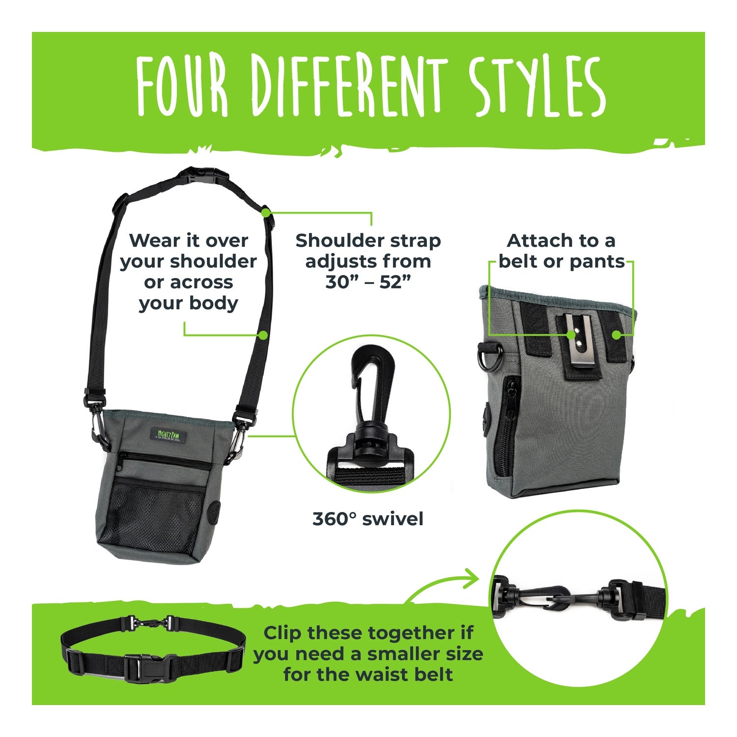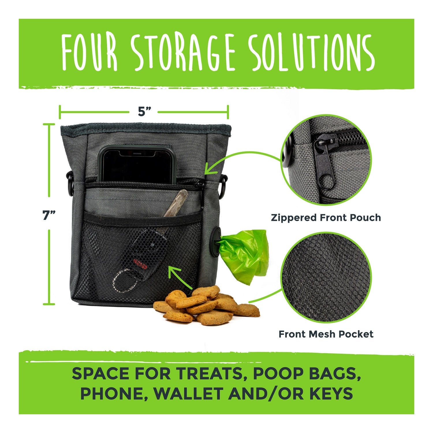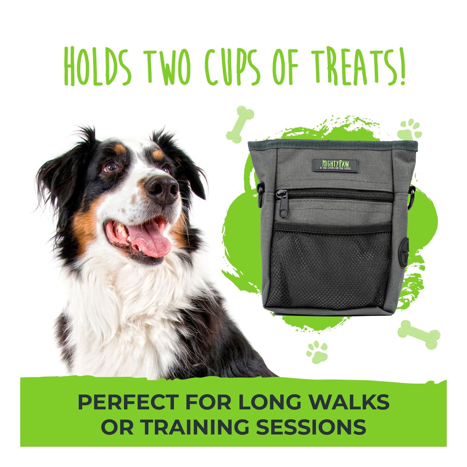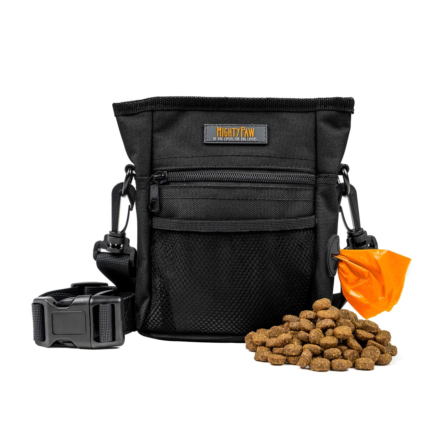 Introducing the Mighty Paw Treat Pouch 2.0, the ultimate hands-free solution for dog training and walks! With 4 storage solutions including a main compartment for treats, mesh pocket for your essentials, and a poop bag holder with free bags, you'll never be caught unprepared. Wear it across your body, around your waist, or on your belt - the possibilities are endless!