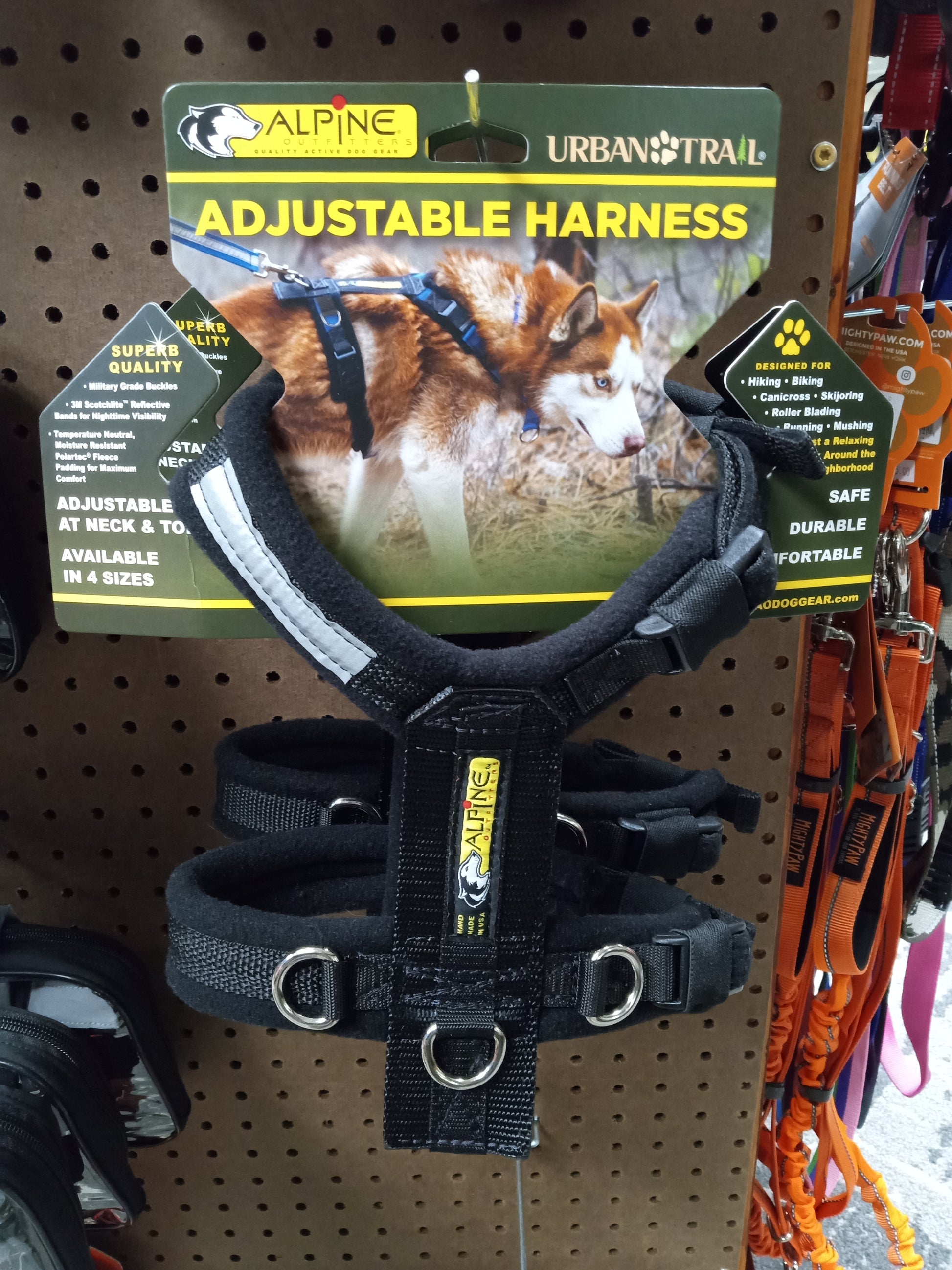 Experience ultimate comfort and safety with the Urban Trail® Adjustable Harness. Perfect for a variety of dog activities, including mushing, scootering, biking, and more. Fully padded for your dog's comfort and easily adjustable at the neck and girth for a perfect fit. Ideal for medium and big dogs, especially seniors.