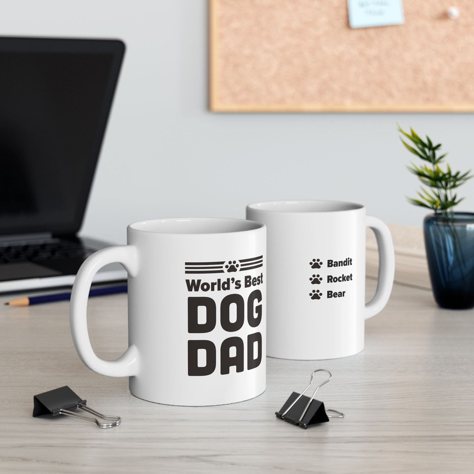 Show off your love for your furry friends with our World’s Best Dog Dad, World’s Best Dog Mom, World’s Best Cat Dad, or World’s Best Cat Mom mugs! These 11oz ceramic mugs are perfect for proud pet parents who want to start their day with a little extra joy. Personalize the design with your pets’ names to make it truly unique and special.